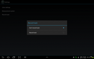 – It can record your path, speed, distance, and elevation and save them in a KML file (for Google Earth) – just press “Menu”, select “Settings” and “Record track”.